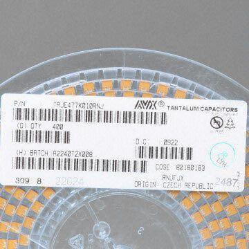 Product name : TAJE477K010RNJ AVX SMD Tantalum Capacitor, Standard-type, RoHS Compliant, 470uF, 10V, E Case, 10% Tolerance