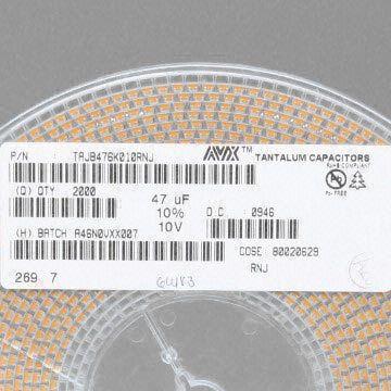 Product name : TAJB476K010RNJ AVX SMD Tantalum Capacitor, Standard-type, RoHS Compliant, 47uF, 10V, B Case, 10% Tolerance
